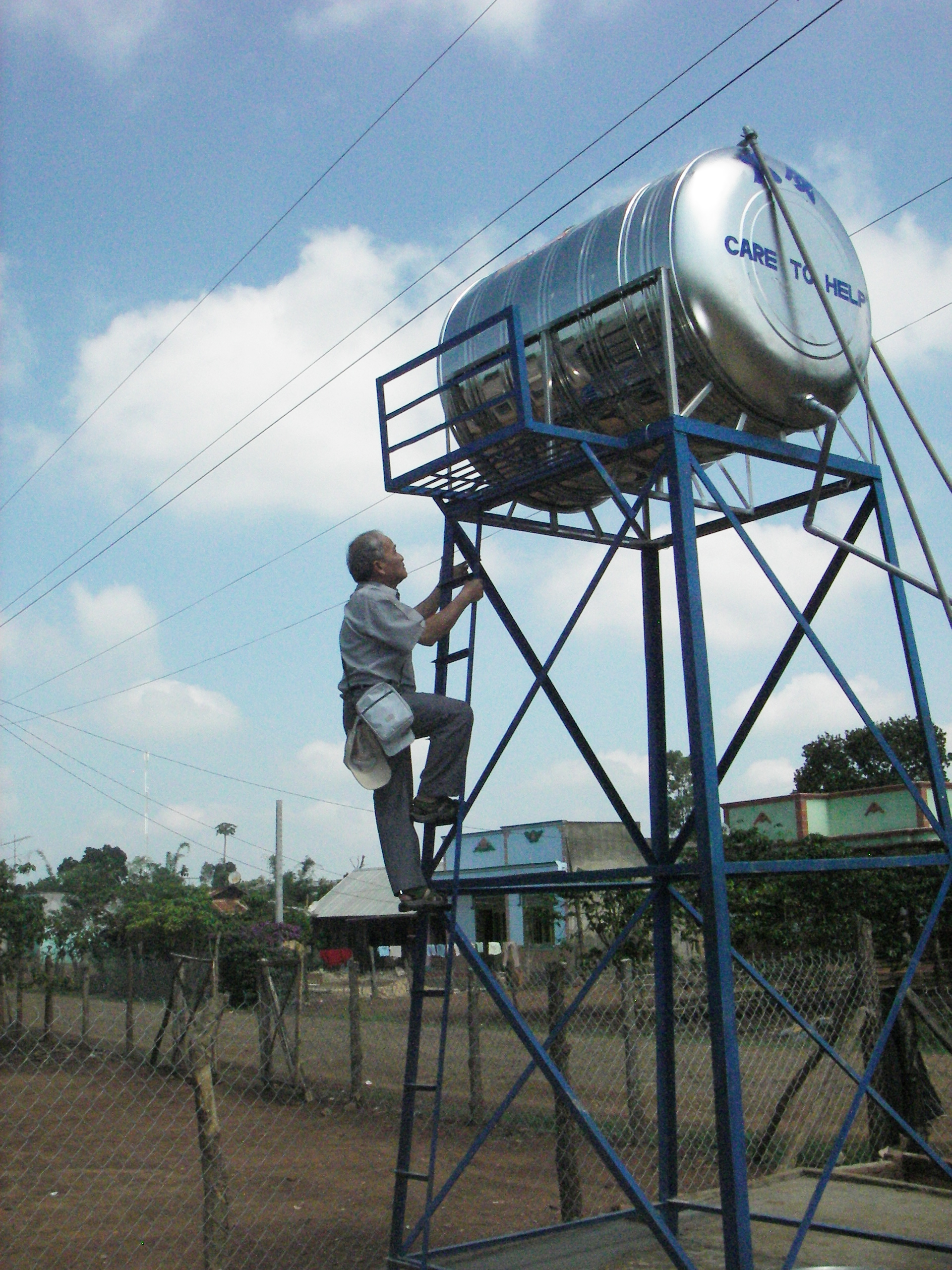 Care to Help originally built a well project at Bao Tuan village in April 2005. Their well has been in constant operation, and under good village management, since that time. Last month, we replaced the masonry holding tank with a small water tower, and stainless steel holding tank. We also helped the villagers pipe water to nearby homes, this is first time these people have ever had running water at their homes.